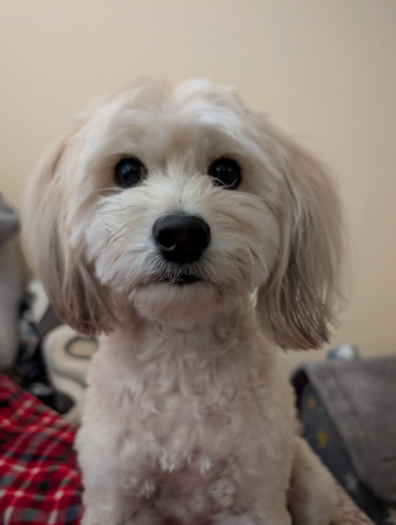 We have a 4 year old Maltipoo named Bawan(肉圓).